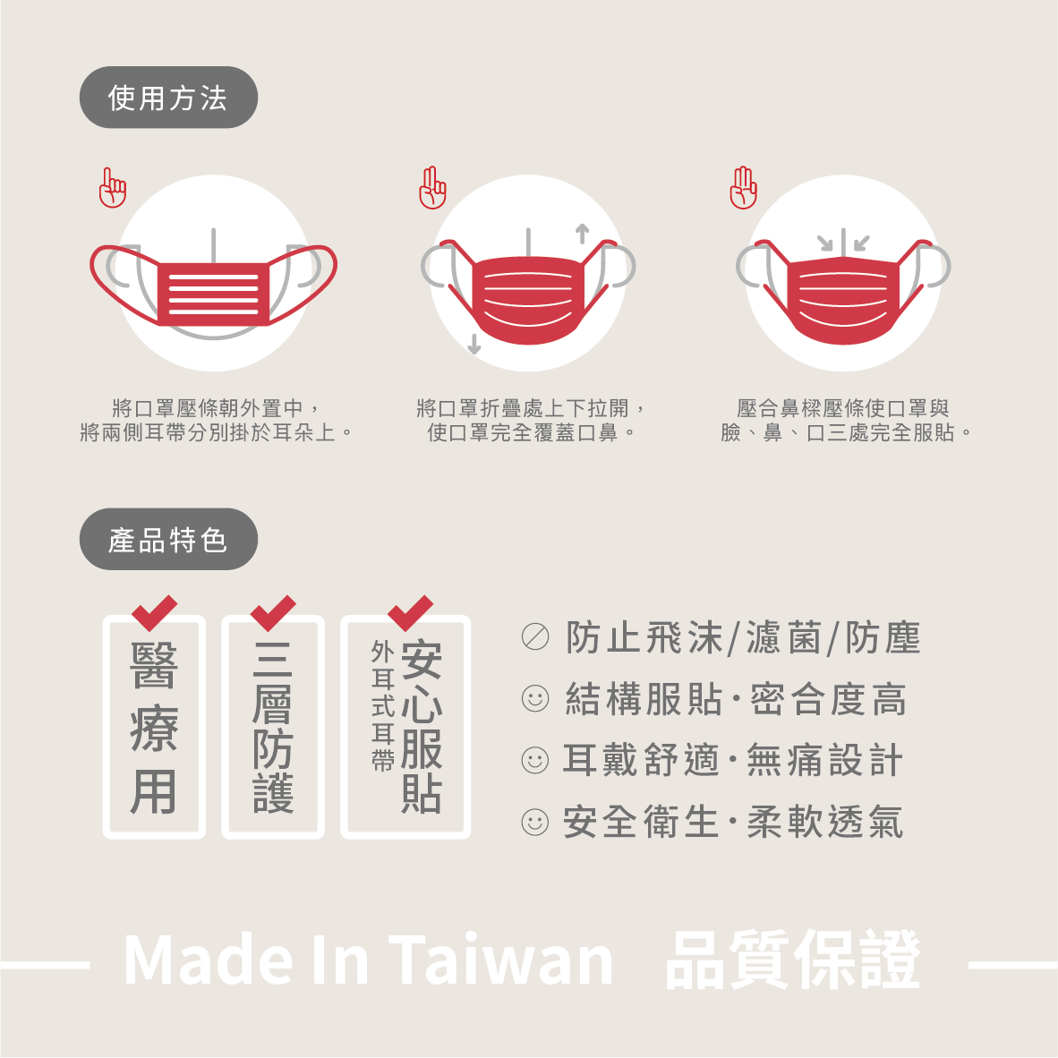 ① 本產品為拋棄式口罩,請勿洗滌或多次使用。
