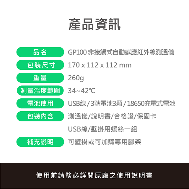 品名:GP100 非接觸式自動感應紅外線測溫儀